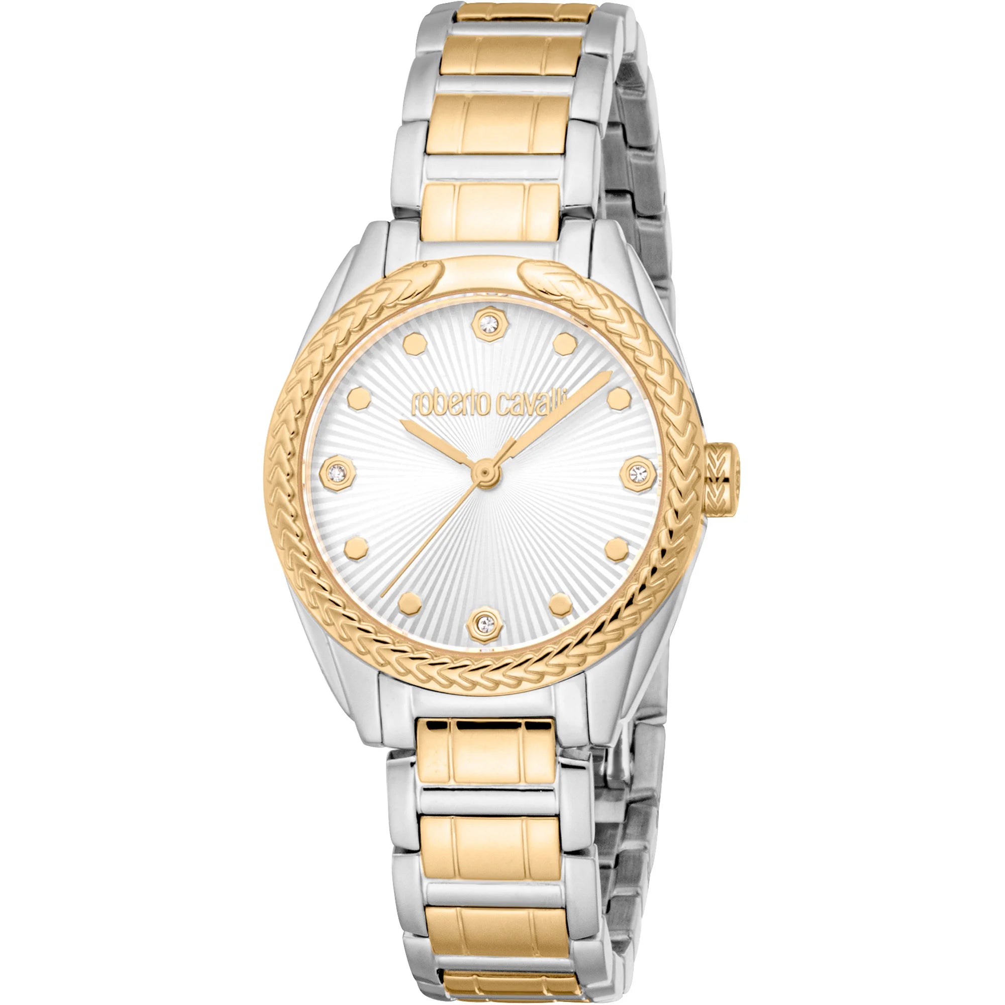 In the world of fashion, where elegance meets innovation, emerges a timepiece that embodies the essence of sophistication and style. Crafted in the heart of Swiss watchmaking, this Roberto Cavalli Lady watch is a testament to refined design and timeless allure. Its round case, bathed in a lustrous silver grey, captures the light with every movement, creating a dance of reflections that is both captivating and subtle. The 30mm diameter strikes a perfect balance between delicacy and presence, making it an ideal companion for the modern woman who values both grace and functionality. With a water resistance of up to 50 meters, this watch is as versatile as it is beautiful, ready to accompany you from the boardroom to the ballroom. The mineral crystal protects the dial, ensuring clarity and durability, while the pull & push crown offers ease of adjustment. The stainless steel band, also in silver grey, wraps around the wrist with a sense of continuity and elegance, secured by a butterfly deployant clasp with a push-button for added convenience. The dial, a harmonious extension of the case, mirrors the silver grey theme, creating a seamless aesthetic that is both contemporary and classic. Powered by a precise quartz movement, this watch features a 3-hand display, driven by the reliable GL32 caliber, ensuring that time is always on your side. This Roberto Cavalli Lady watch is not just an accessory, it is a statement of style, a reflection of the wearer's impeccable taste and a celebration of the art of watchmaking.