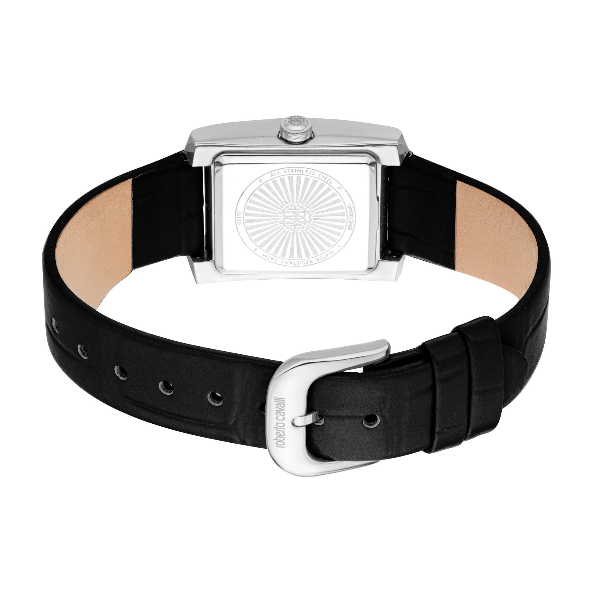 In the world of fashion, where elegance meets innovation, emerges a timepiece that captures the essence of sophistication and style. Crafted in the heart of Swiss watchmaking excellence, this Roberto Cavalli Lady watch is a testament to refined design and timeless allure. Its rectangular case, bathed in a lustrous silver grey, exudes a sense of modernity and grace, perfectly complementing the sleek lines of its silhouette. The night blue dial, reminiscent of a starlit evening sky, adds a touch of mystery and depth, while the three-hand display, powered by a precise quartz movement, ensures that time is always on your side. The mineral crystal offers a clear view of the dial, protected by a pull & push crown that seamlessly integrates into the design. A black leather band, soft yet durable, wraps comfortably around the wrist, secured by a classic tang buckle, making it an ideal companion for any occasion. Water-resistant and designed for the fashion-forward woman, this watch is more than just an accessory, it's a statement of elegance and individuality, a piece that speaks to the heart of those who dare to embrace their unique style.