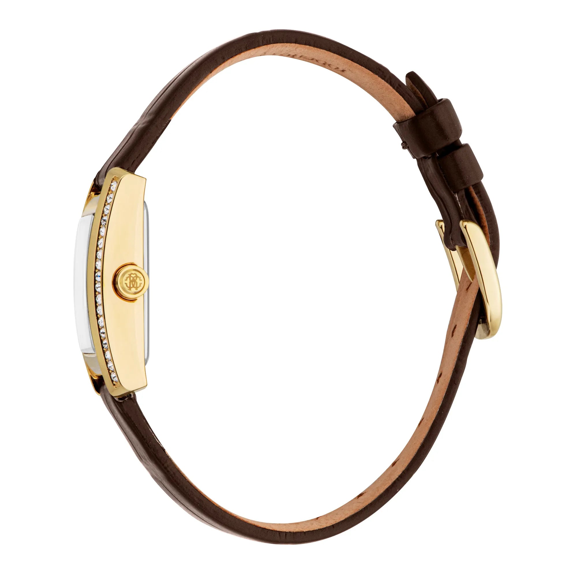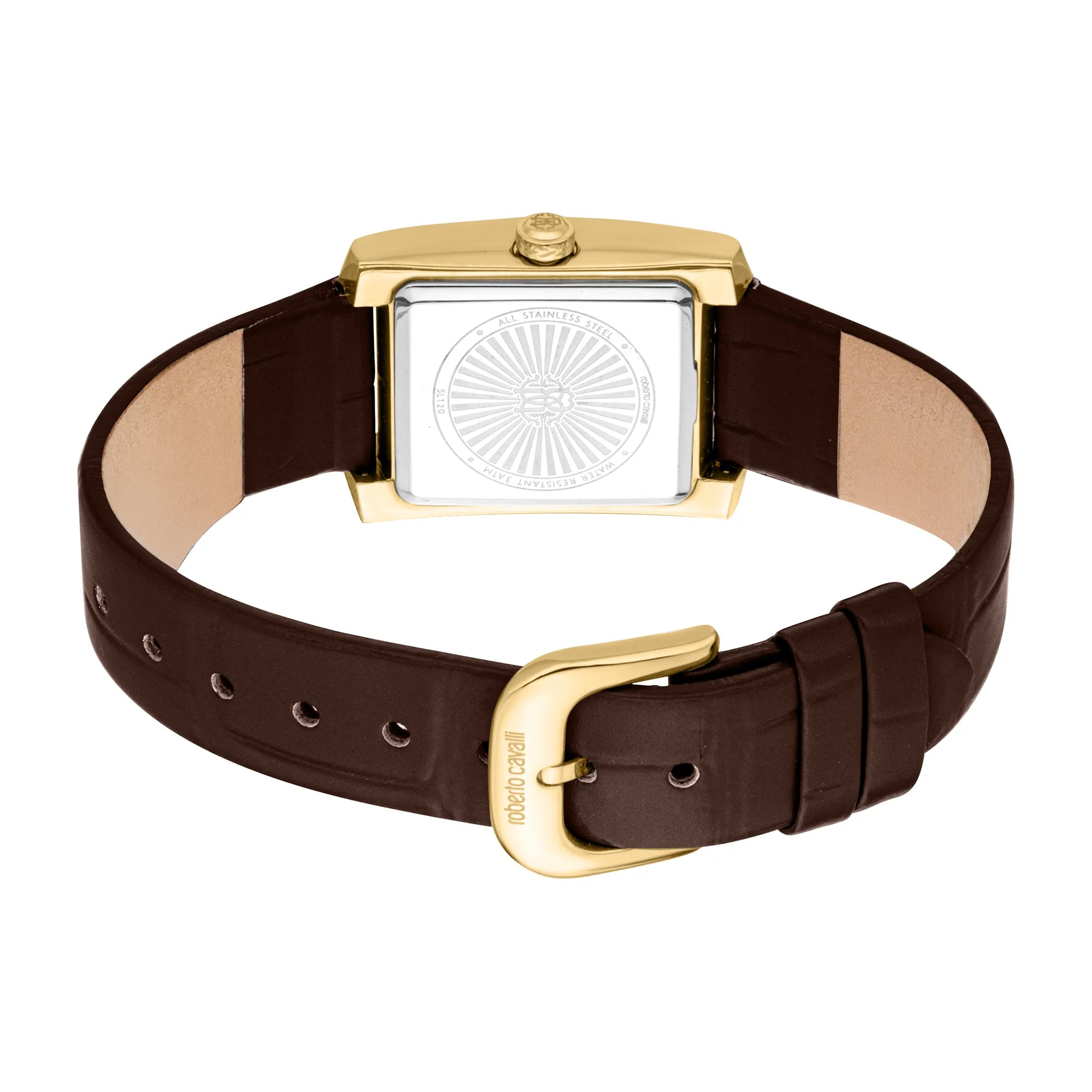 In the world of fashion, where elegance meets innovation, emerges a timepiece that captures the essence of sophistication and style. Crafted in the heart of Swiss watchmaking, this Roberto Cavalli Lady watch is a testament to refined design and exquisite craftsmanship. Its rectangular case, bathed in a luxurious yellow gold hue, exudes an aura of opulence, making it a perfect accessory for the modern woman who appreciates the finer things in life. The mineral crystal protects a silver-grey dial, where three hands dance gracefully, powered by a precise quartz movement with a GL34 caliber. The pull & push crown adds a touch of practicality, ensuring that time is always at your fingertips. Encircling the wrist with a chocolate brown leather band, this watch offers a delightful contrast to its golden case, secured with a classic tang buckle for a comfortable fit. Water-resistant, it stands as a reliable companion for any occasion, whether you're navigating the bustling city streets or attending an elegant soirée. This Roberto Cavalli Lady watch is more than just a timepiece, it's a statement of fashion-forward thinking and timeless elegance, designed for those who dare to stand out in a crowd.