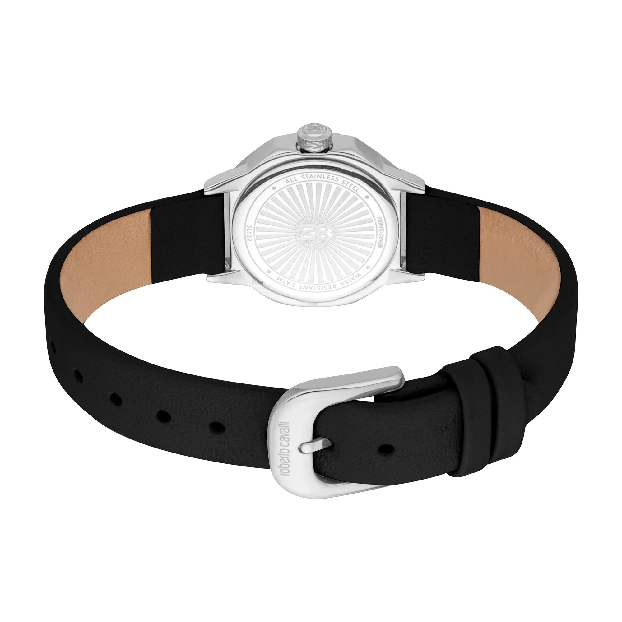 In the world of fashion, where elegance meets innovation, emerges a timepiece that captures the essence of sophistication and style. Crafted in the heart of Swiss watchmaking, this Roberto Cavalli Lady watch is a testament to refined design and exquisite craftsmanship. Its octagonal case, bathed in a lustrous silver grey, exudes a modern allure that is both bold and graceful. The 24mm diameter is perfectly proportioned for the feminine wrist, offering a delicate yet striking presence. With a water resistance of up to 50 meters, it promises reliability without compromising on elegance. The mineral crystal protects a dial that mirrors the case's silver grey hue, creating a seamless harmony that is both understated and captivating. The pull & push crown adds a touch of practicality, while the quartz movement ensures precision in every tick. Encircling the wrist is a sleek black leather band, secured with a tang buckle, offering comfort and style in equal measure. The three-hand display, powered by the GL32 caliber, dances gracefully across the dial, marking time with an elegance that is quintessentially Roberto Cavalli. This watch is not just an accessory, it is a statement of fashion-forward thinking, a celebration of femininity, and a nod to the timeless allure of Swiss craftsmanship.