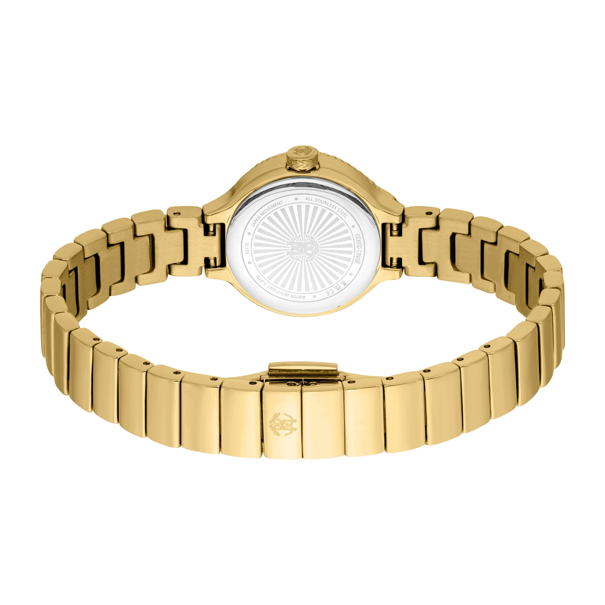 Perfect for adding a touch of glamour to any outfit, from casual chic to evening wear, this Roberto Cavalli women's watch is more than just a time-teller—it's a statement of style. Each genuine Roberto Cavalli watch comes presented in its original, elegant black box, making it an ideal gift. Elevate your wristwear with this luxurious yellow gold stainless steel watch, exclusively available at Watchello. Find your next iconic fashion watch today.