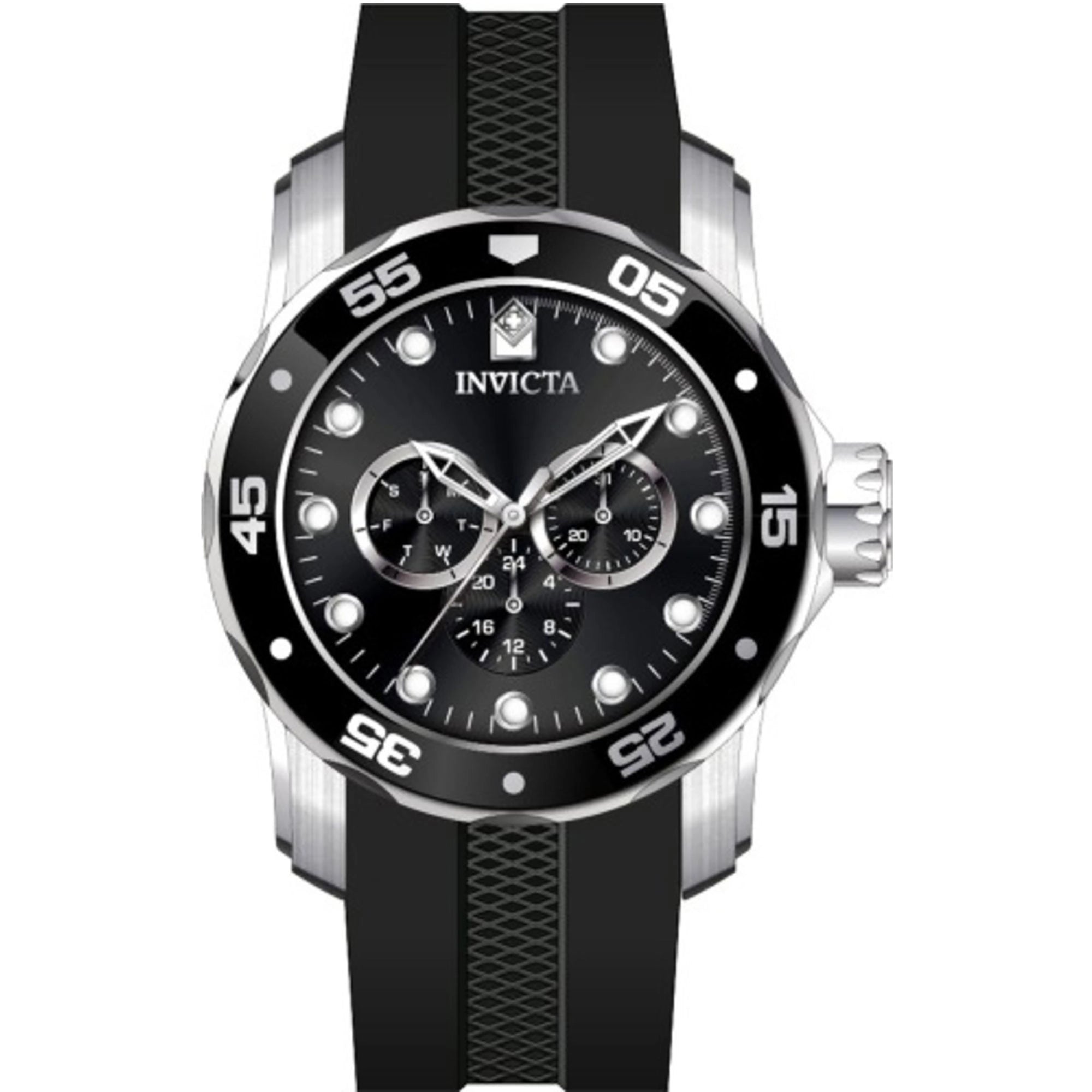 At its heart, the Invicta Pro Diver features a precise SEIKO VH63 Quartz movement, offering accurate analog timekeeping complemented by convenient Day and Date display functions. This dependable movement ensures precision for your daily schedule.