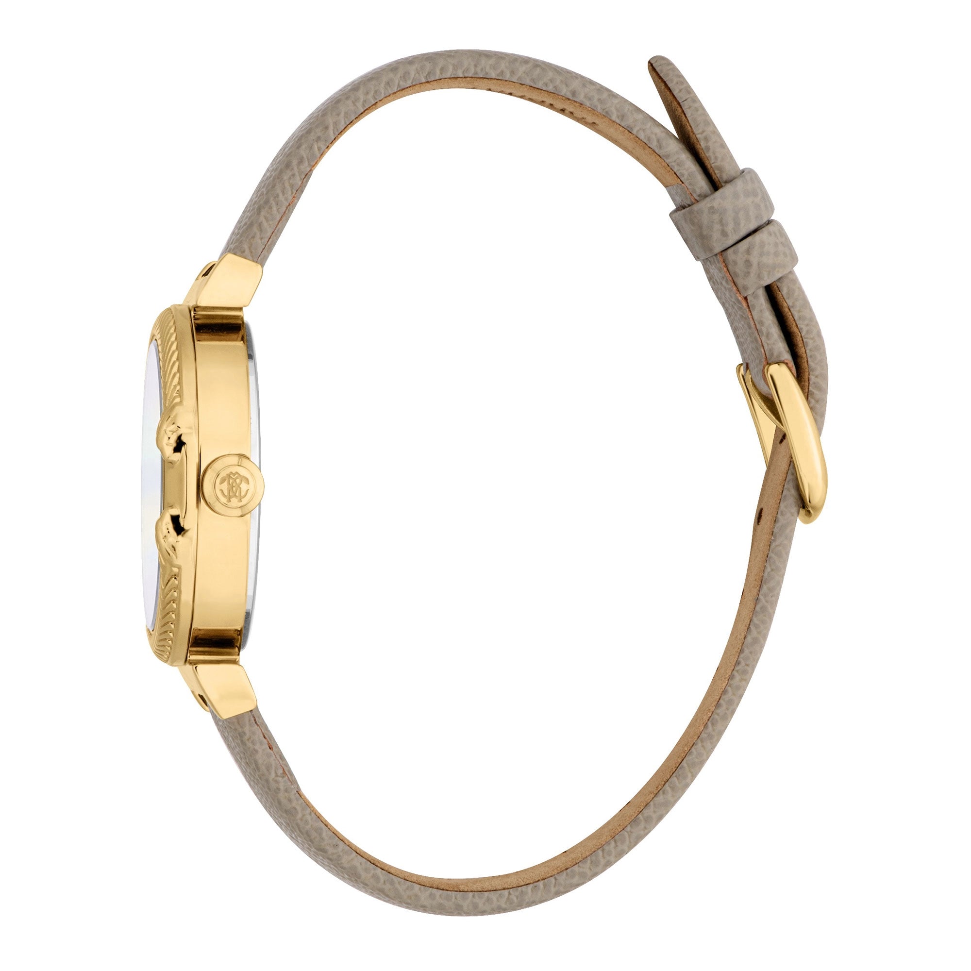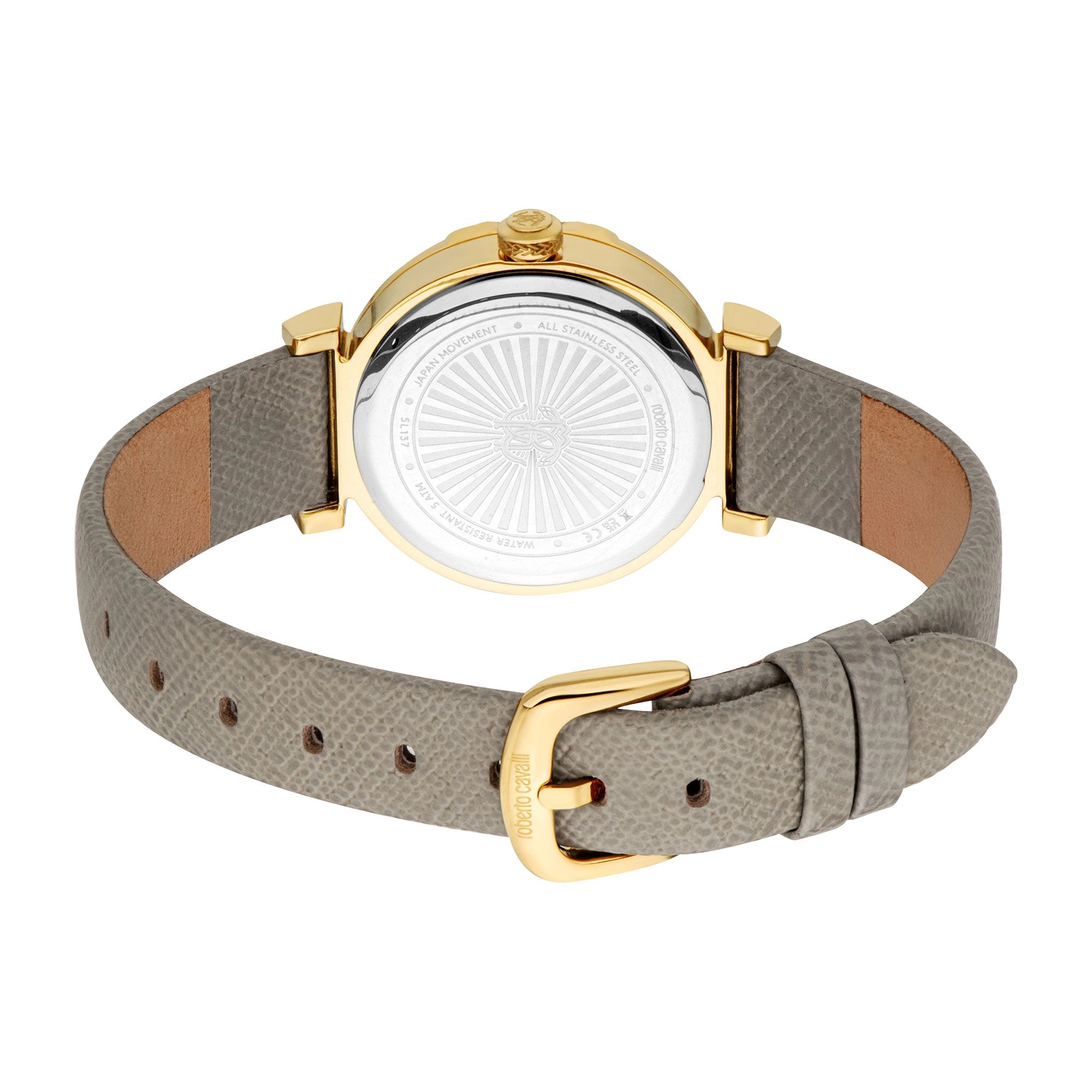 Beneath its beautiful exterior, this fashion watch is powered by a reliable CITIZEN GL34 quartz movement, offering precise 3-hand timekeeping. With a water resistance of 50mt, it is designed to withstand splashes and brief immersion, making it suitable for everyday wear. Each Roberto Cavalli Lady watch comes presented in an original Roberto Cavalli box, ensuring authenticity and making it an ideal gift or a treasured addition to your personal collection. Elevate your style with this iconic yellow gold and mother-of-pearl watch, available now at Watchello.